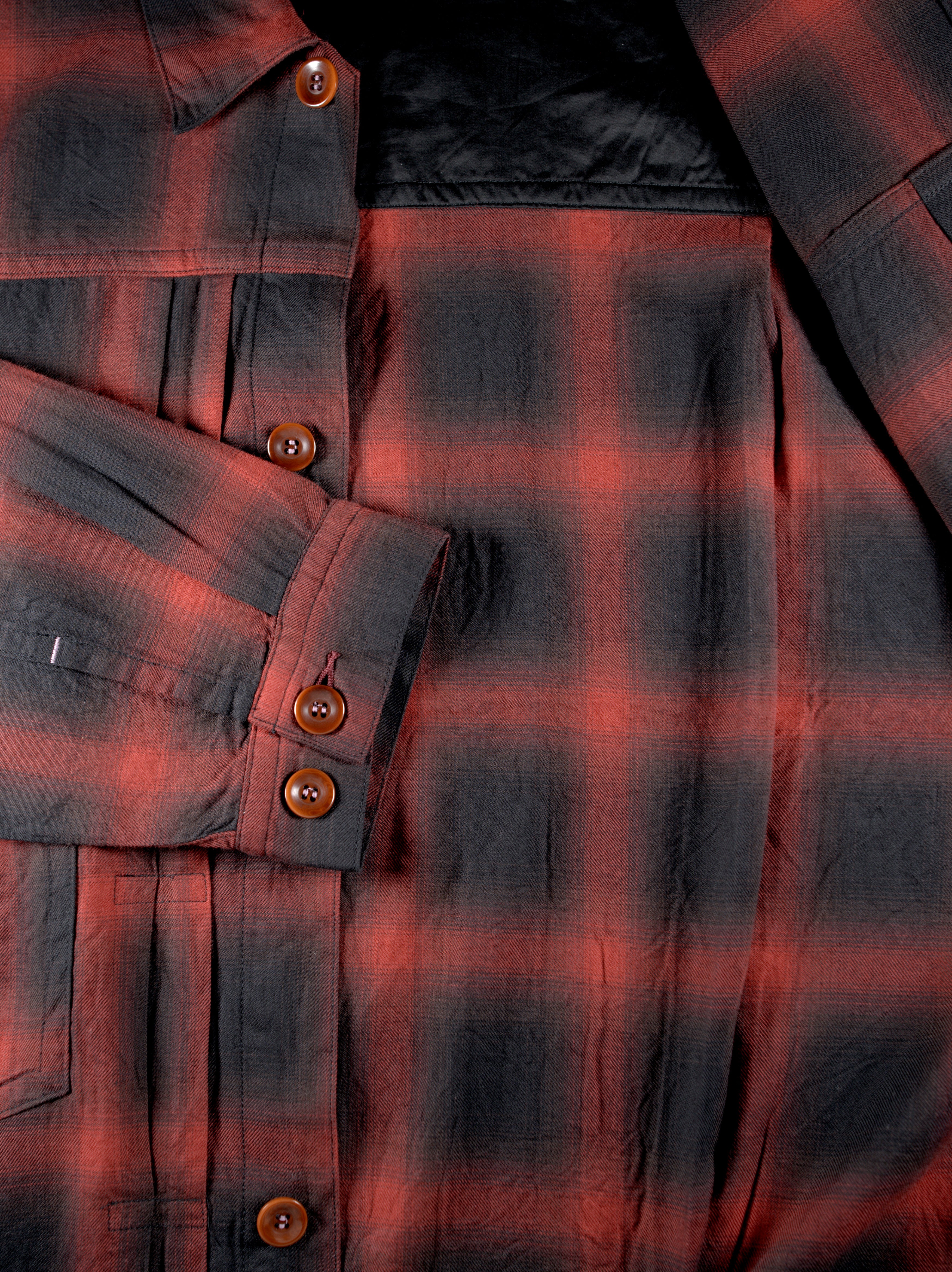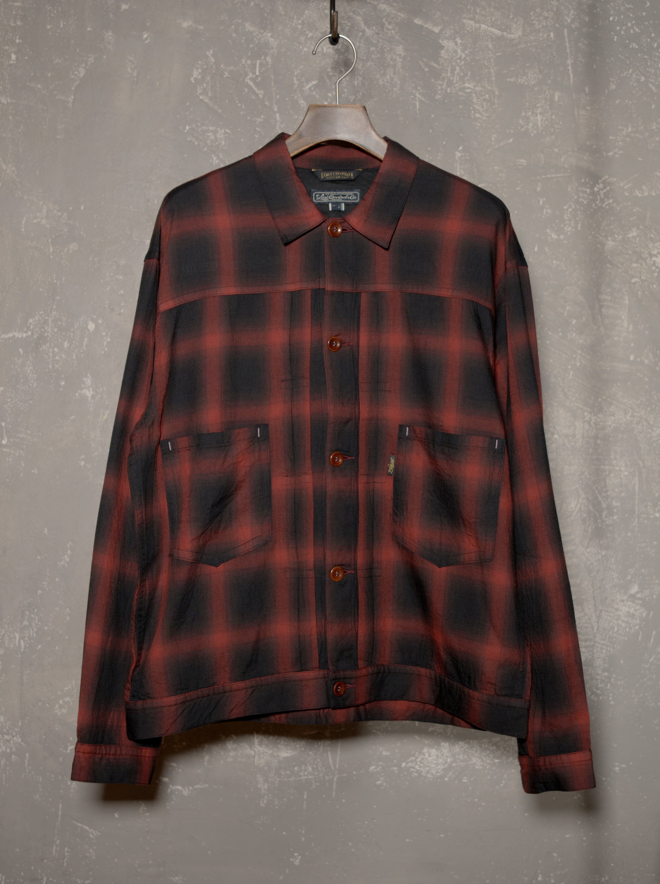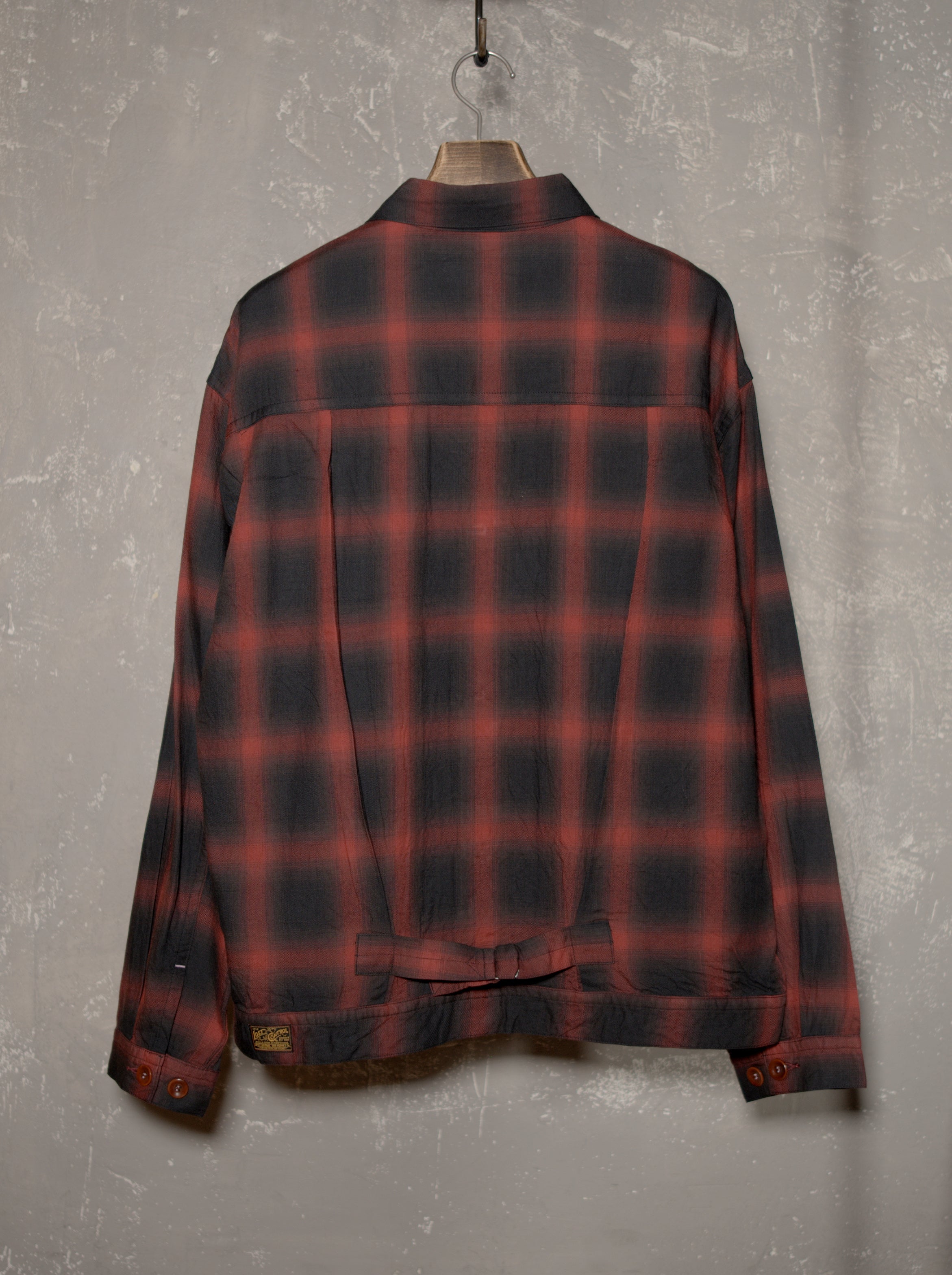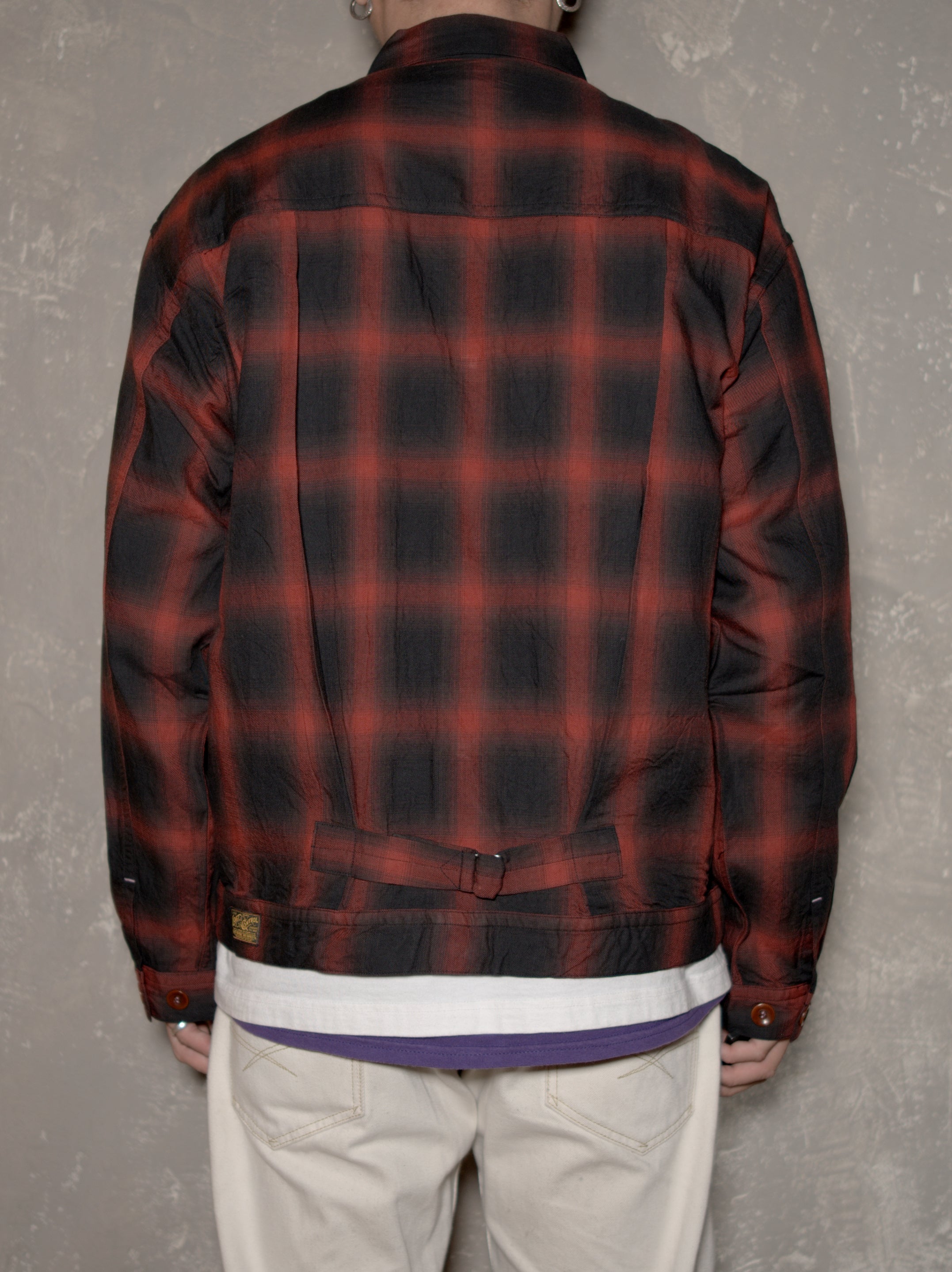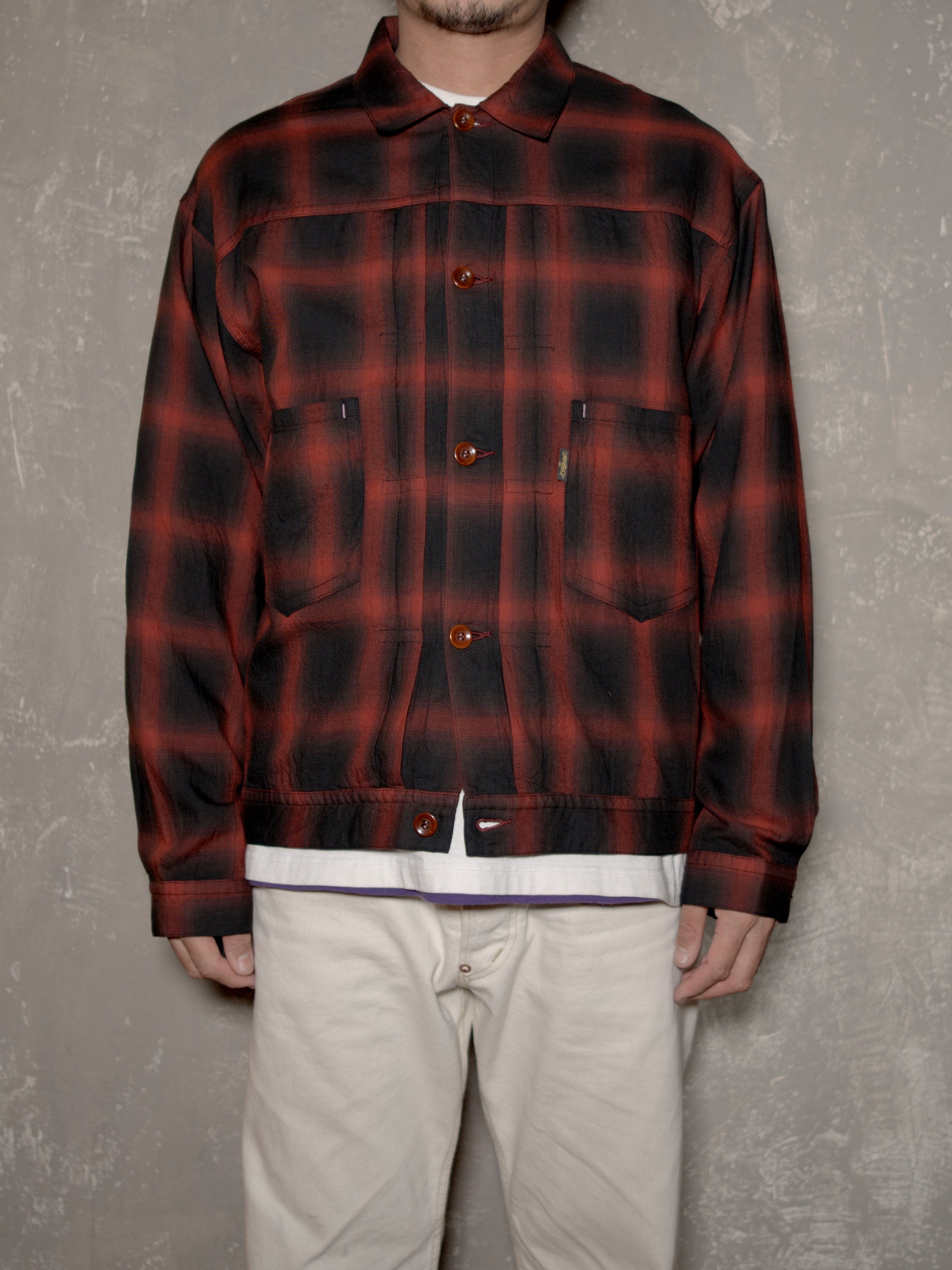 コットン・レーヨン混紡のオンブレチェックを使用したトラッカーシャツジャケット