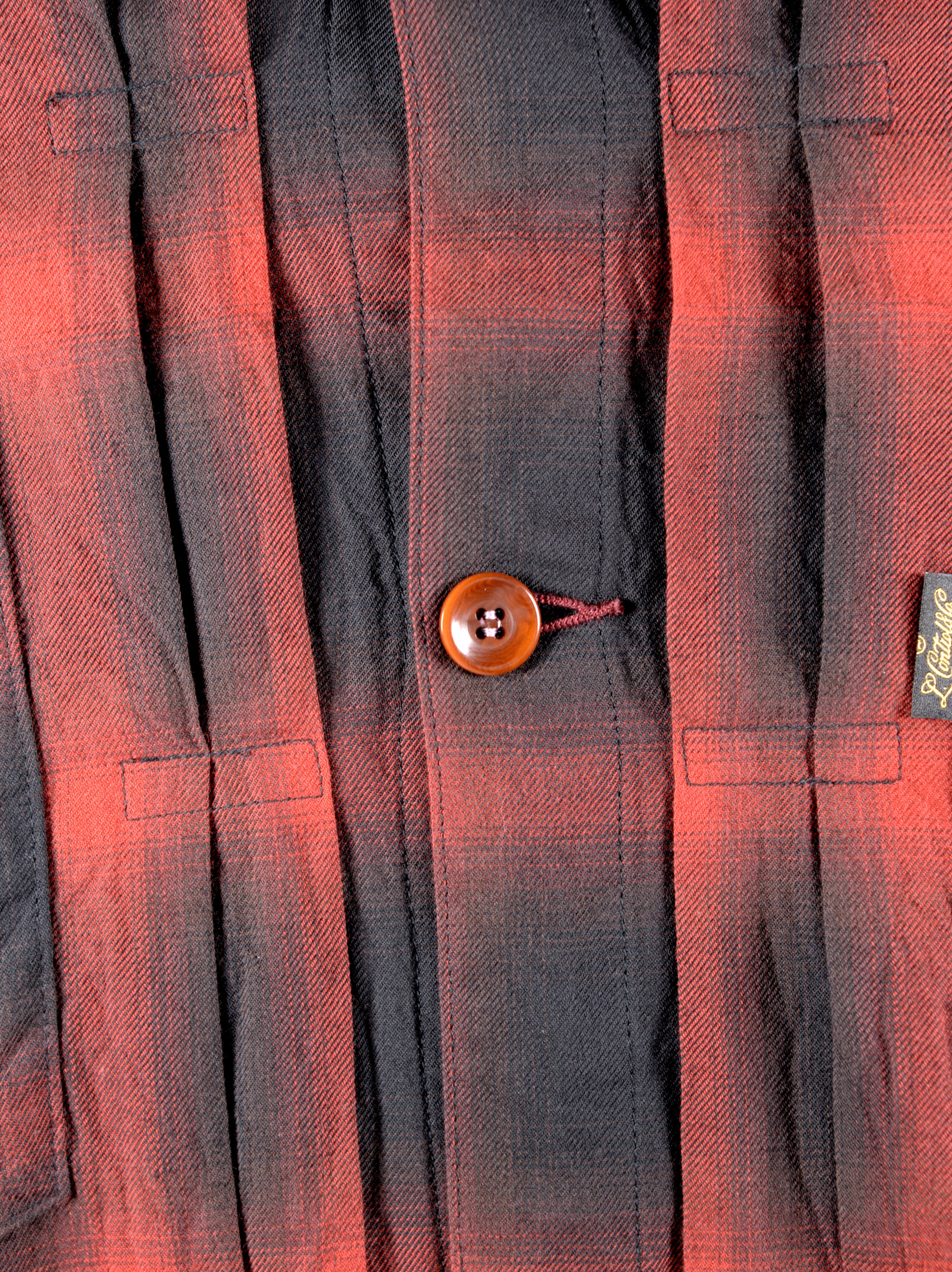胸ポケット・袖口あきにあるカンヌキ止めは表地に対してライトトーン調の配色に設定